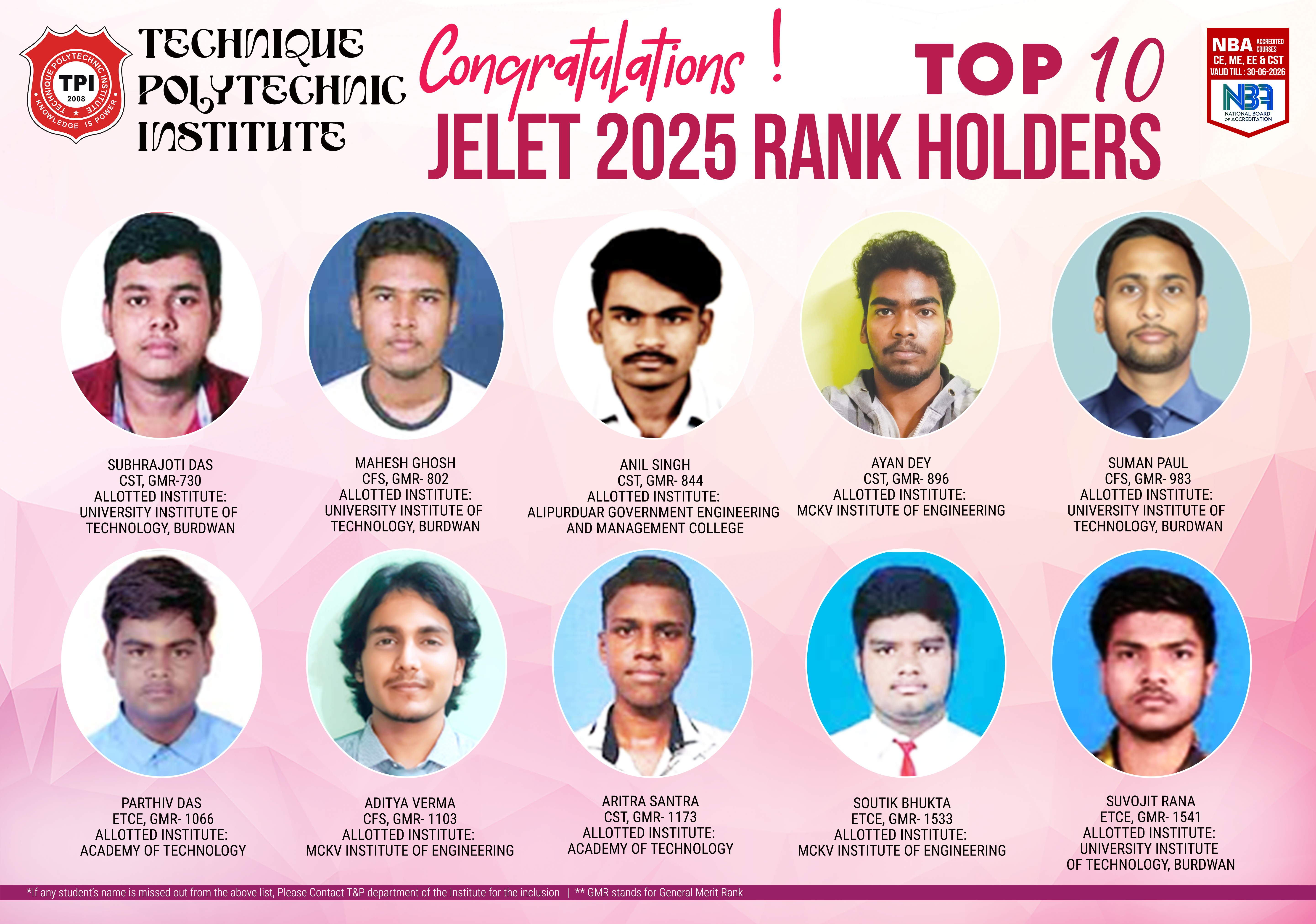 Technique Polytechnic Institute currently offers 3-years Diploma courses in various fields of engineering & technology. The Institute is situated at Panchrokhi, Sugandhya which is within the immediate vicinity of Historical cities as Hooghly and Bandel.