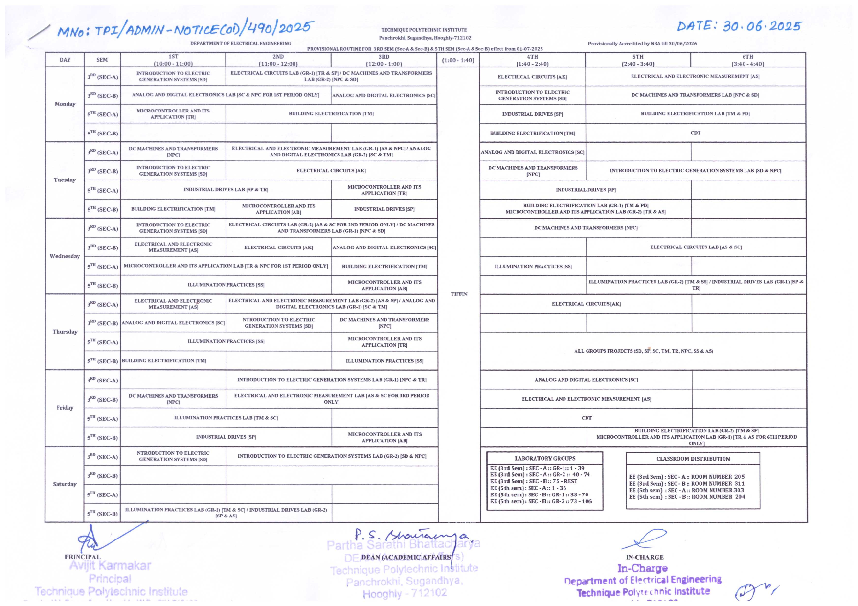 CLASS ROUTINE FOR 3RD & 5TH 2025-26