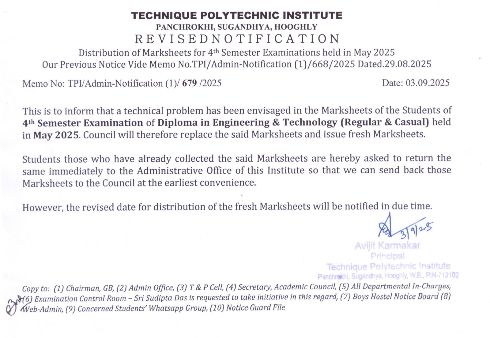 NOTICE FOR 4TH SEMESTER MARKSHEET DISTRIBUTION