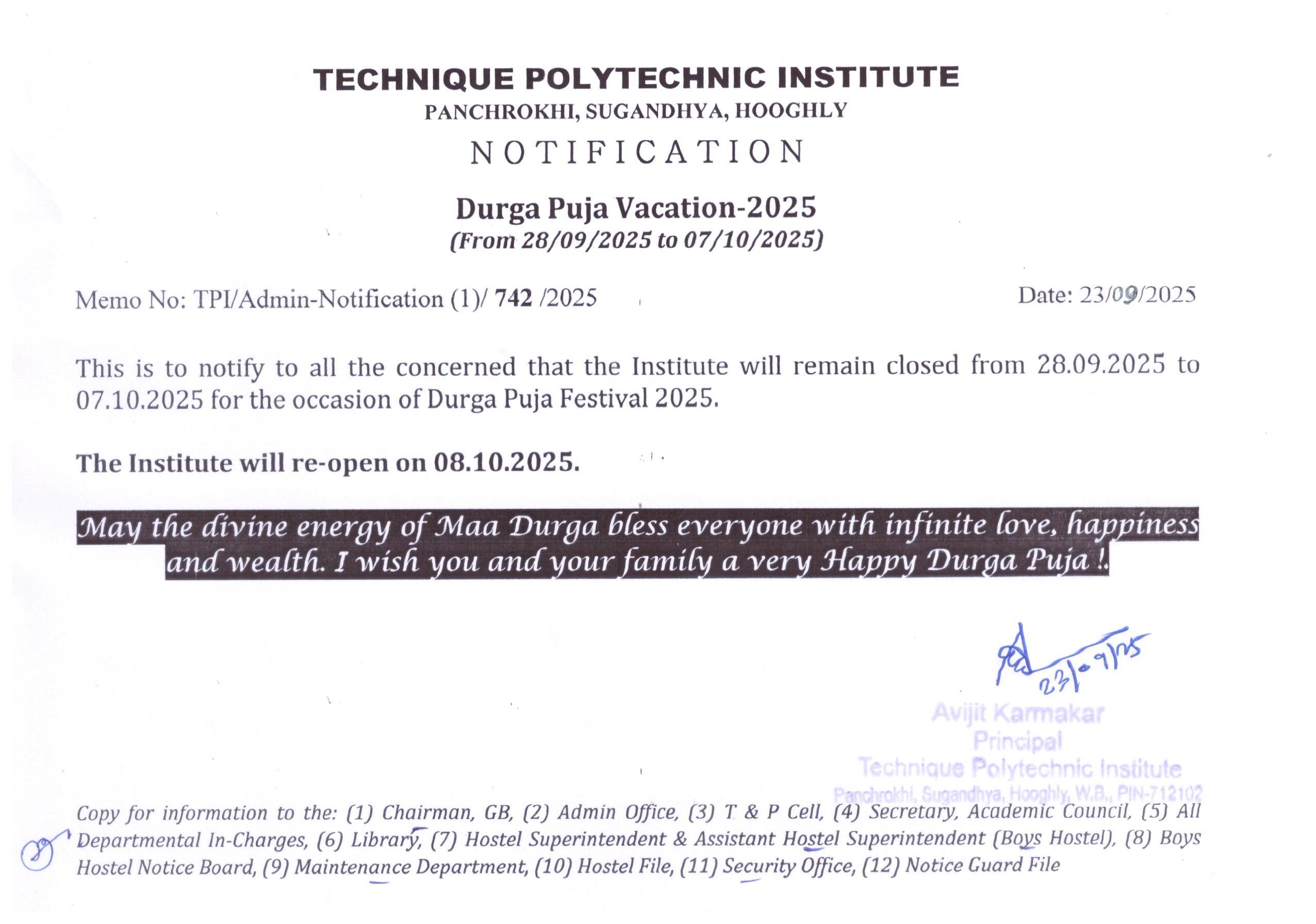 INSTITUTE RE OPENING AFTER PUJA VACATION 2025