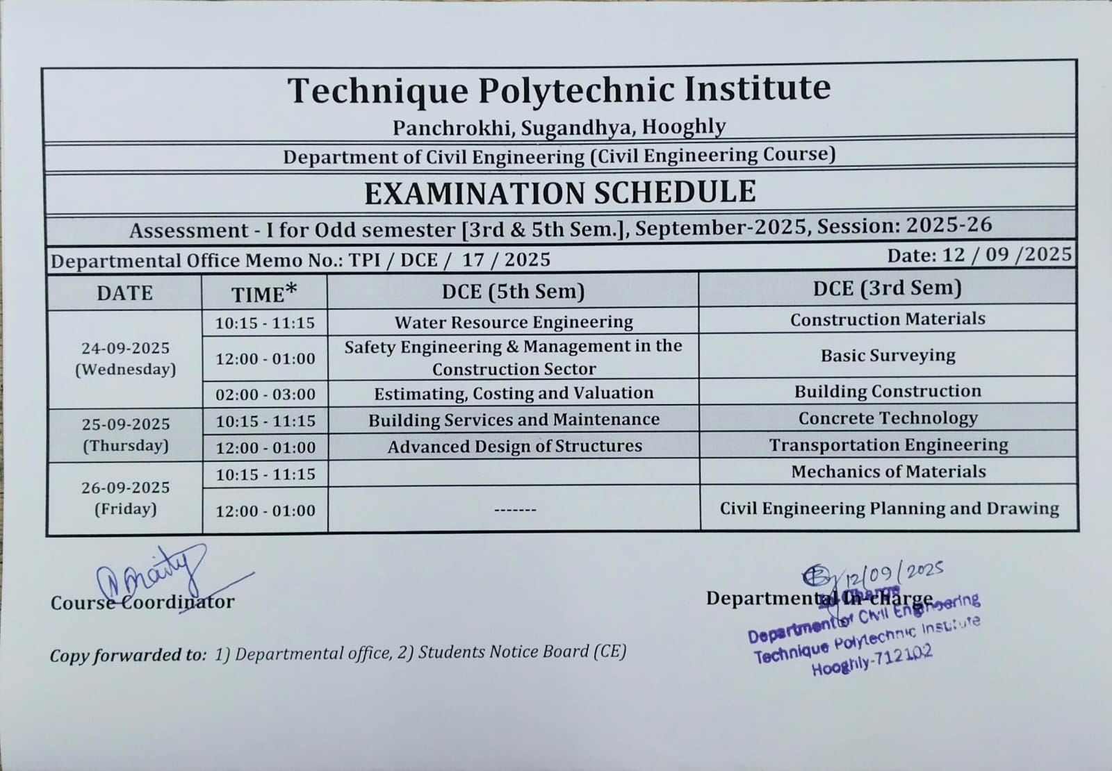 Schedule of "Assessment - I, 2025"