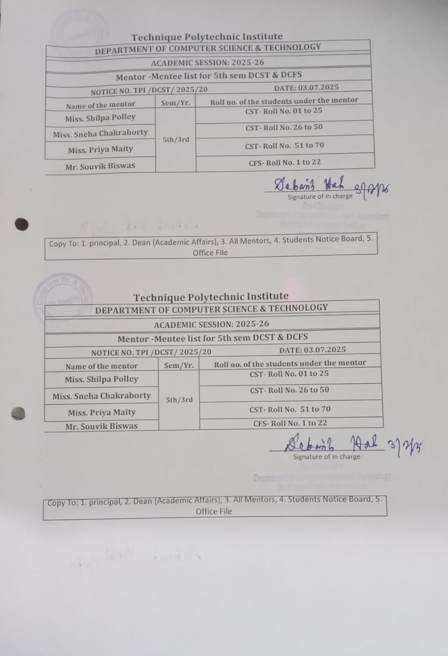 MENTOR & MENTEE LIST[SESSION:2025-26]