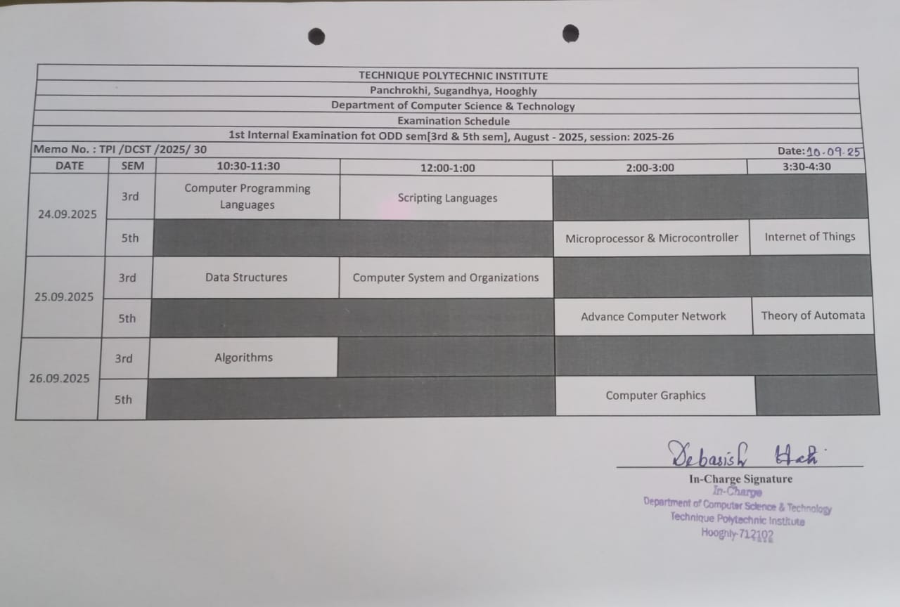 SCHEDULE FOR 1ST INTERNAL EXAMINATION FOR CST & CFIS