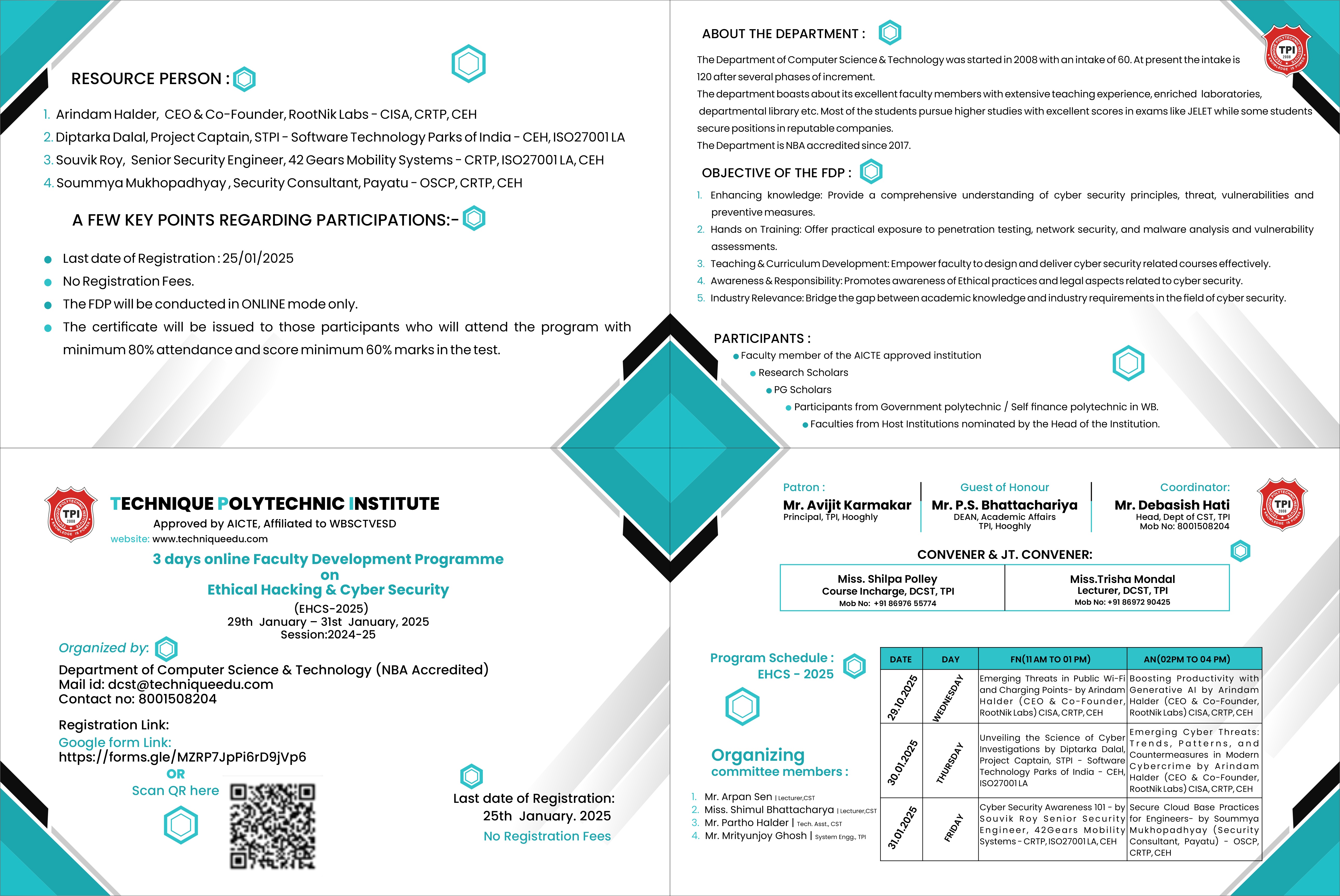State-Level Faculty Development Program on Ethical Hacking & Cyber Security[29.01.2025 to 31.01.2025]