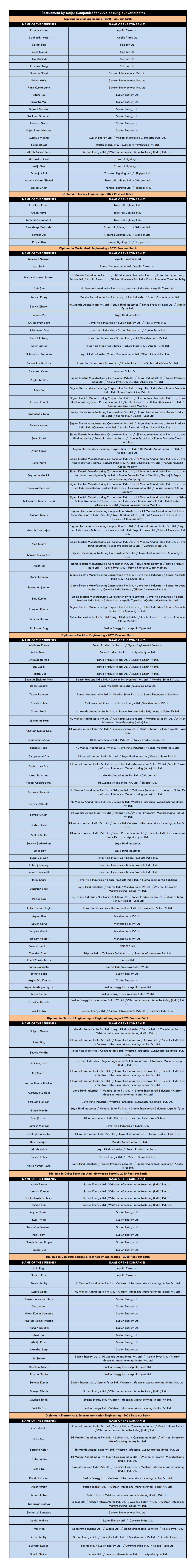Placed students in TATA Projects Ltd. (2017 Passout Batch)