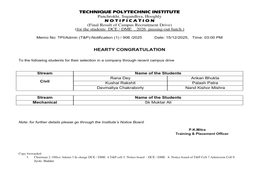 Read MoreHEARTY CONGRATULATIONS TO THE STUDENTS WHO HAVE RECENTLY SELECTED IN COMPANIES (06/03/2024)